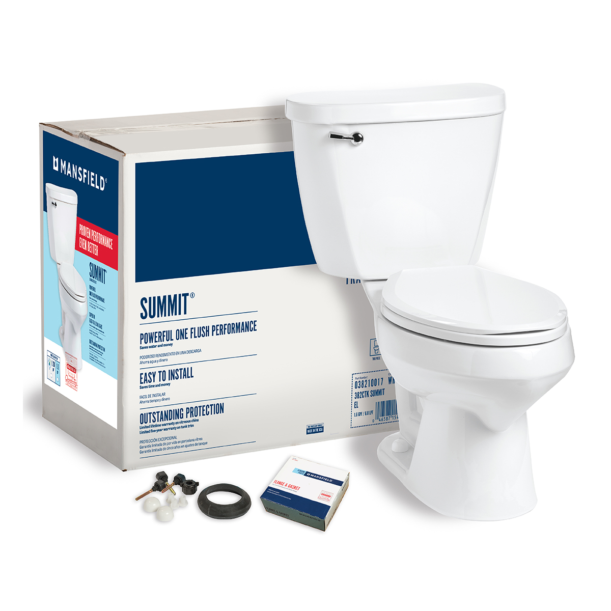 - Complete Toilet Kit (CTK) includes everything you need: toilet bowl and tank, toilet seat, flange bolts, wax ring with polyethylene flange and instructions